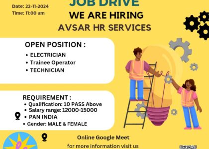 🗓 Date: 04th November, 2024Time 10:00 am🏢 Interview Venue: District Employment Exchange Office/ Model Career Centre,
