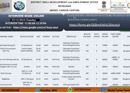 🏢 Interview Venue:1.11-11-2024 Saharpada Block Office2.11-11-2024 Patna Block Office3.12-11-2024 Banspal Block Office4.12-11-2024 Telkoi Block Office5.13-11-2024