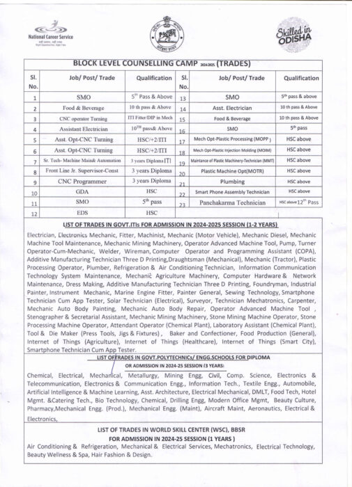 It has been decided to organize a block-level counseling camp 2024-25 from 24 December to 18 January in all the blocks of the district with the cooperation of the Odisha government’s skill development authority and District administration, Kendujhar.