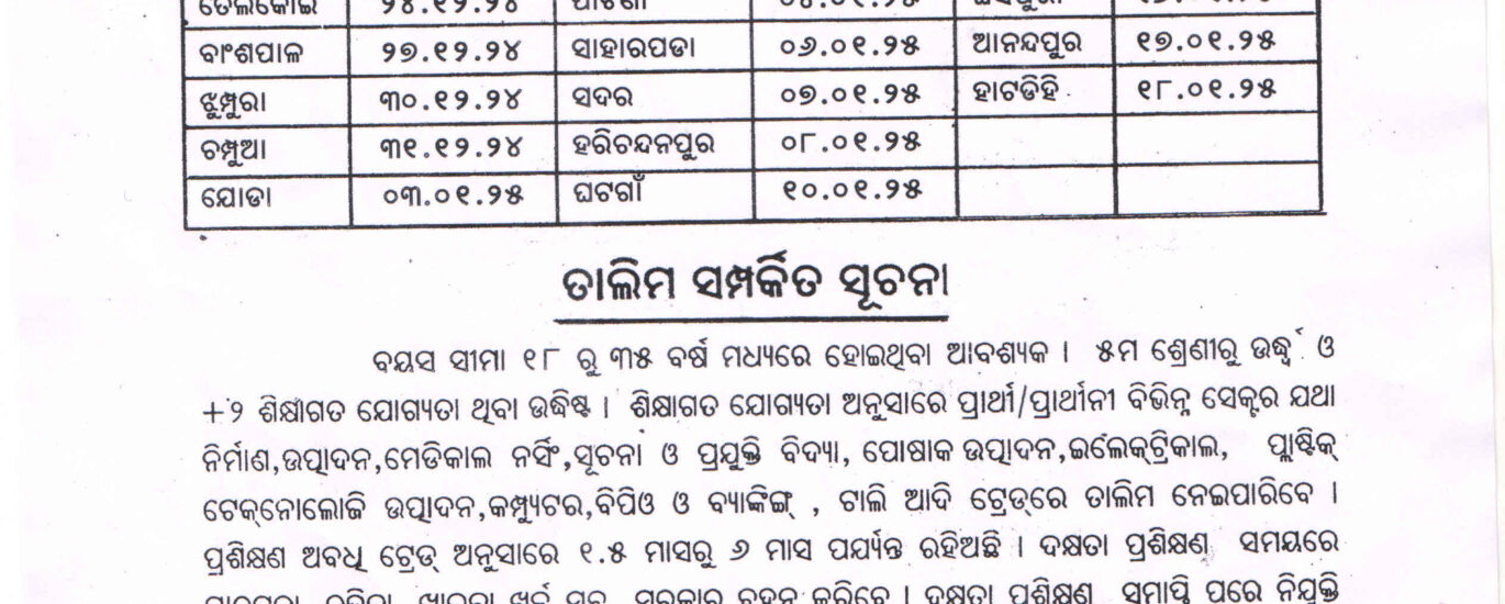 (In collaboration with Odisha Employment and District Administration, Kendujhar)