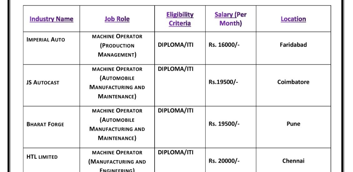 candidates from B.Tech, Diploma, and ITI backgrounds across all streams. All