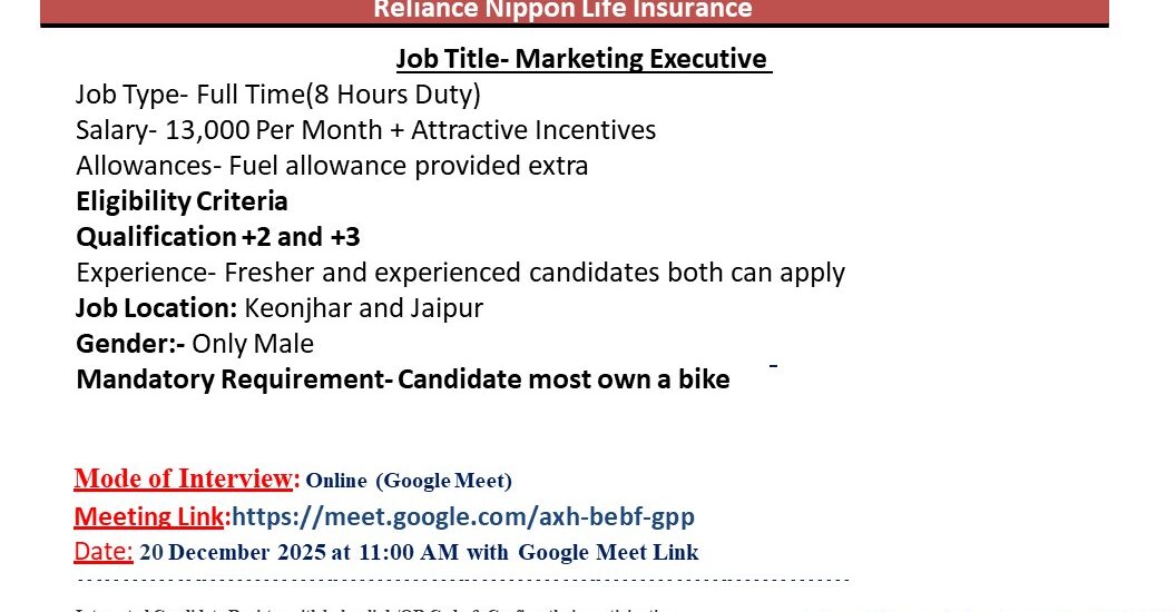 Job Location: Keonjhar and Jaipur