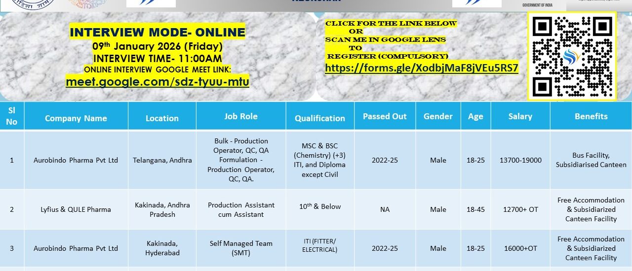 Post Name: Bulk – Production Operator, QC, QA Formulation – Production Operator, QC, QA. Production Assistant cum Assistant, Self Managed Team (SMT)