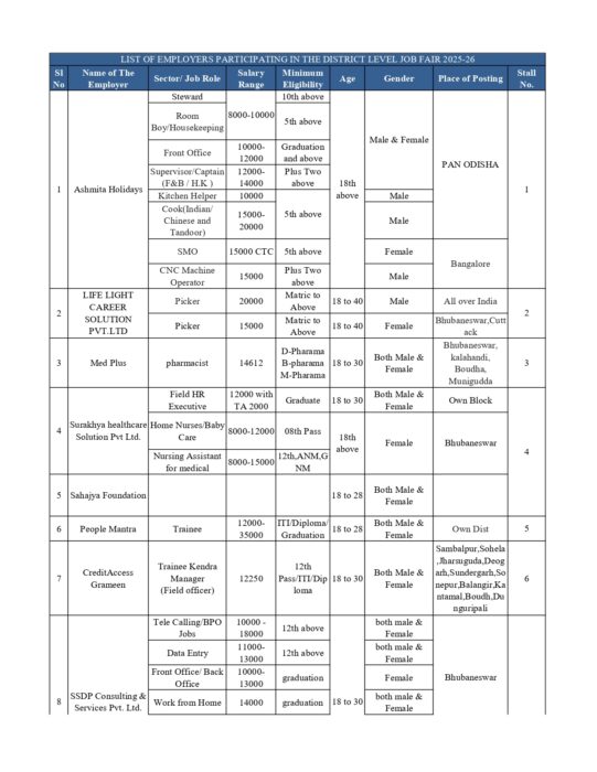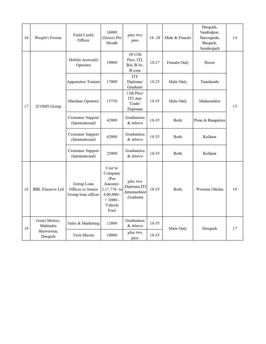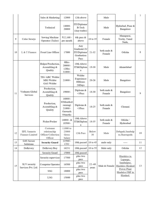 | 9 | Shahi Export Pvt. Ltd | SMO | 10th Above | 18-35 | Female | Kuchinda, Sambalpur | 27 |