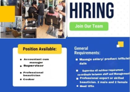 Shree Salon & Spa. 2 Gentlemen, 2 Ladies, 2 Supervisors, 1 Manager. (For all positions, experienced individuals with a background in Salon & Spa will be given priority.