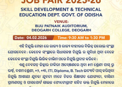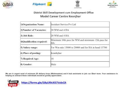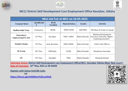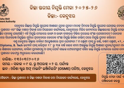 Registration Here: https://forms.gle/QbbqHk8e826HgYFN7 The District Administration, Keonjhar in collaboration with Odisha Skill Development Authority (OSDA)