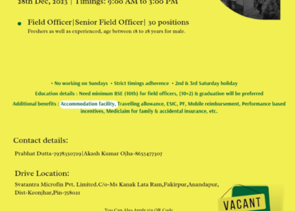 Dear Candidate,📣 Job Drive Alert! 📣Attention, all job seekers! 🕵️‍♂️🕵️‍♀️Job Drive for Svatantra Microfin Pvt.